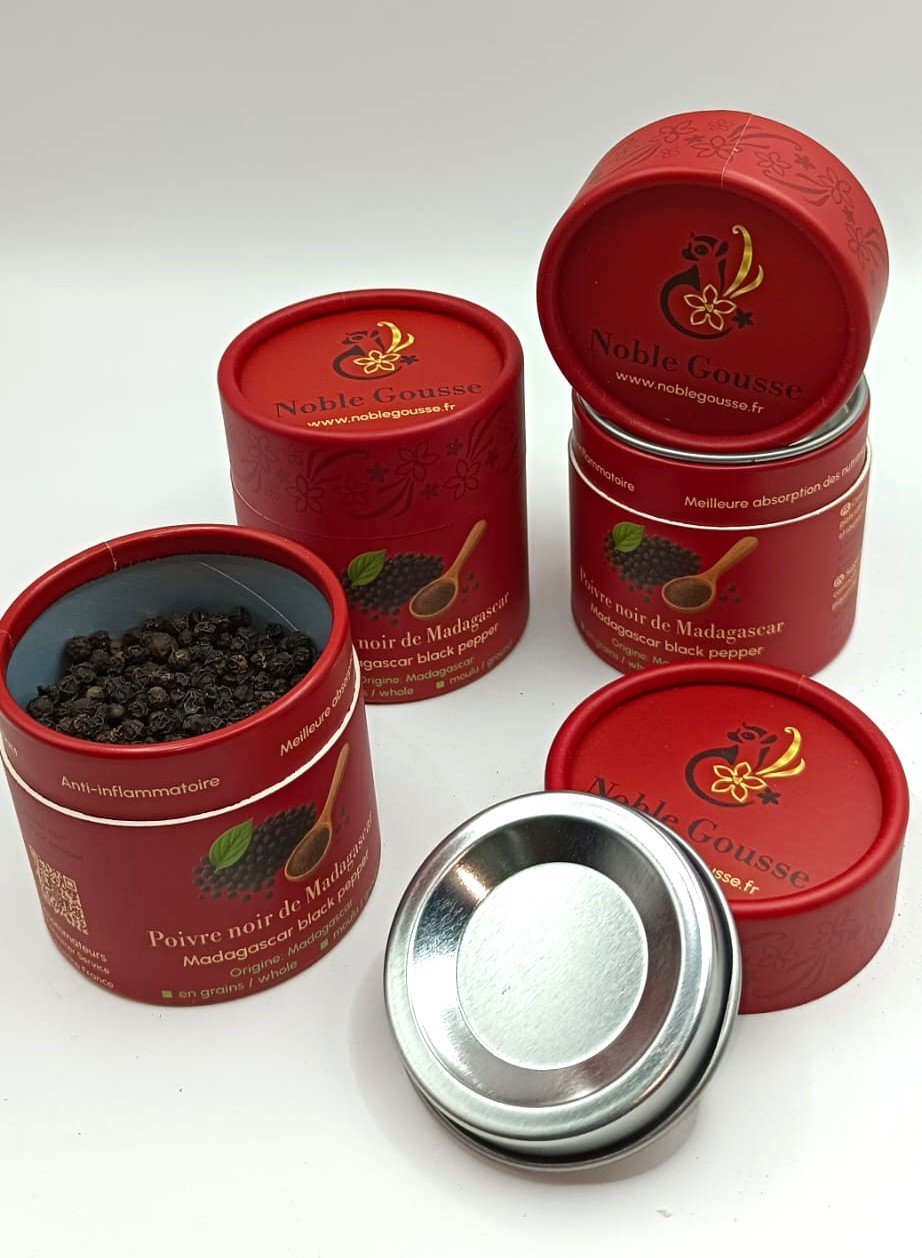 🌱 Origine: Notre poivre noir est cultivé à Madagascar, dans des régions reconnues pour la qualité exceptionnelle de leurs épices. Les sols riches et le climat tropical offrent des conditions idéales pour produire des grains denses, parfumés et naturellement puissants. Nous sélectionnons les grains les plus frais afin de garantir une intensité aromatique optimale. Chaque récolte met en valeur le savoir‑faire malgache et l’excellence d’un terroir réputé dans le monde entier.